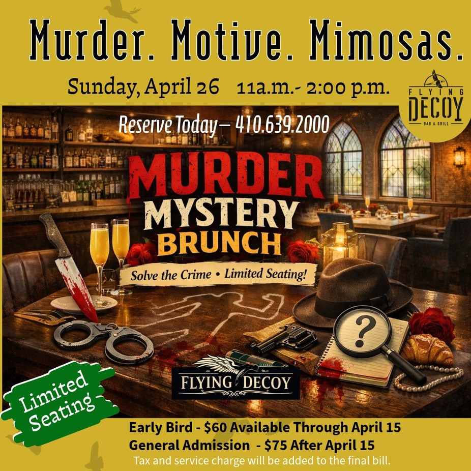 Join us for an interactive Murder Mystery Brunch where great food meets live entertainment! Work with your table to uncover clues, question suspects, and solve the mystery—all while enjoying a delicious three-course brunch.